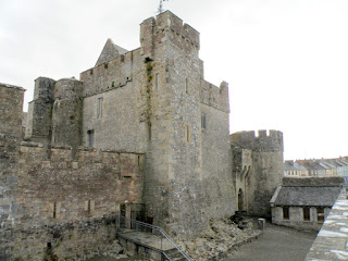 on avait espéré du beau temps pour aller dans les montagnes eh bien c'est manqué ! Le plafond est bas, il pleut et il ne fait pas chaud, la totale quoi ! Nous étions 6 dans le minibus mais ni les 2 Suédoises, ni les 2 Canadiennes n'ont cherchées à communiquer; comme il pleuvait abondamment quand nous sommes arrivés , nous avons commencé par visiter le musée , voir la vidéo et aller déjeuner; c'était une bonne idée car à la sortie de là il ne pleuvait plus; nous avons réussi à passer entre les gouttes pendant 2h, le temps de faire les 2 sites distants de 2kms environ et de faire une petite promenade le long du deuxième lac ( chaque site est au bord d'un lac ) avant de reprendre une averse et de remonter dans notre véhicule. La retour dans les montagnes s'est fait dans les nuages et la visibilité était pour le moins réduite , ce qui était regrettable car il devait y avoir des vues splendides sur des lacs encaissés; ces montagnes culminent à 930m tout de même et là haut il ne reste que des tourbières, pas un arbre qui ne tienne ! Mais ce site de Glendalough date du VIe siècle et il raconte bien l'histoire des vikings et du début du Christianisme.